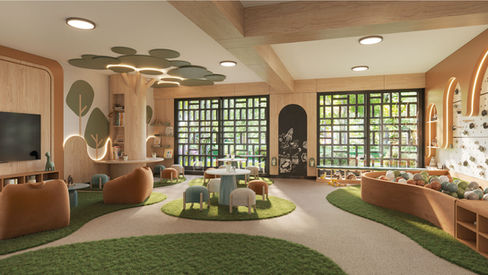 En un entorno residencial con espacios verdes y la energía de un parque lleno de vida y actividad.